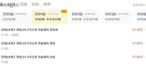 这辆车的表显里程为1.7万公里,车身颜色为银灰色,上牌时间为2023年11月,上牌地为西安,车源地也为西安,至今未有过过户记录。其新车指导价为79.88万,而现在的二手车报价为51.98万,相较新车含税价87.22万来说,当前售价几乎半价。
