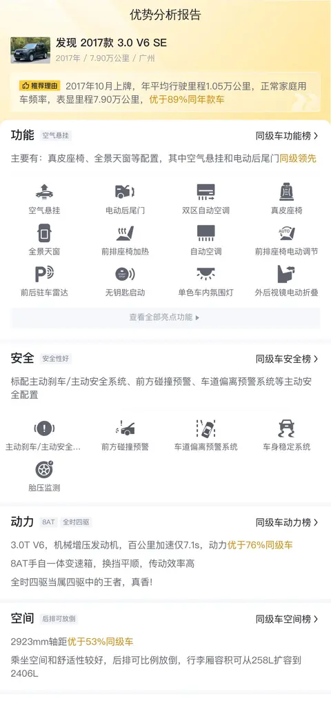 综上所述,该车在配置、动力、空间等方面均表现出色,尤其在四驱能力和后排空间方面具有明显优势。售价方面,虽然处于市场行情的合理范围内,但并无人傻钱多的买家,所以还是要实地检验车况,综合评判。