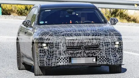 从谍照来看,新车目前还处在高度伪装状态,前脸能够看到双肾型格栅的痕迹,内部使用了横幅式结构进行装饰,有着比较强的层次感;大灯组依然采用了分体式设计,日行灯的造型还无法判断,远近光灯位于格栅两侧靠下的位置,内部结构可能还是临时状态,并非最终造型。