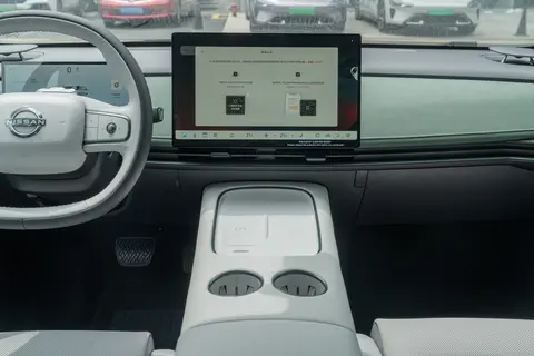 如果说外观是吸引消费者的第一要素,那么座舱则是决定用户长期体验的关键。东风日产 N7 的内饰以 “云享座舱” 为设计理念,通过材质、布局和功能的巧妙组合,营造出居家般的温馨感。中控台造型极为简约,从上到下分别采用搪塑、翻毛皮、皮革、金属等不同材料拼接,视觉层次分明。车内简化了实体按键,采用怀挡设计,为前排节省了更多空间,同时前排还提供了手机无线充电和 2 个杯托,常用功能都集成在中控屏内,操作方便快捷。