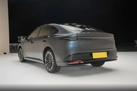 日产N7的车侧汲取了轿跑化的设计元素,车顶线条从B柱顶端逐步下沉,形成了顺畅的溜背式结构,窗边饰条采用了熏黑涂装,配上红色卡钳和花瓣式的镂空轮毂,呼应了车侧的轿跑风格。腰身区域配有较为锋利的棱线设计,搭配上弹出式的隐藏门把手,提升了车侧的风阻性能。车尾区域配有微翘的鸭尾边角,下方则为熏黑的贯穿式尾灯,中部的“NISSAN”LOGO可同时点亮,提升了车尾的辨识度。