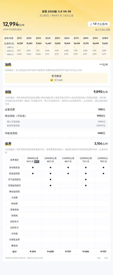 在用车成本方面,这辆车的10年平均成本大约在21701元/年,与同级别车相比处于适中的水平。具体的实际费用开销可能会根据用车强度和环境等因素有所改变。