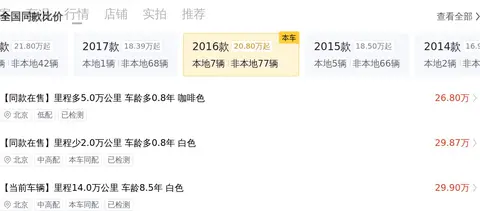 二手车一车一况,一况一价,接下来我们再看看这辆车的价格在全国同款车型中处于什么水平。