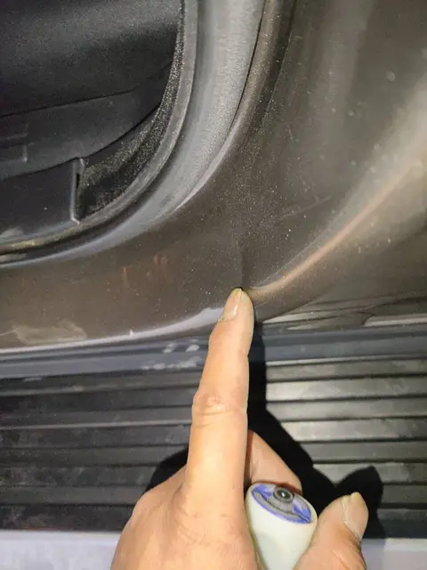 在外观检测部分,这辆车的表现一般,可能是前任车主的驾驶技术一般,或者对车辆使用并不是很爱惜。在外观部分的多个位置都有不同程度的剐蹭、划伤和喷漆修复,具体瑕疵项请往下看细节。