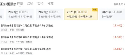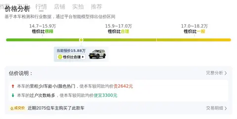 接下来,我们看看这辆车的市场行情如何。根据大数据统计,同款车型的二手车价格大致在14.65万至18.02万之间。需要注意的是,具体价格受到车辆状况等因素的影响,而本车15.88万的报价则处于合理区间之内。