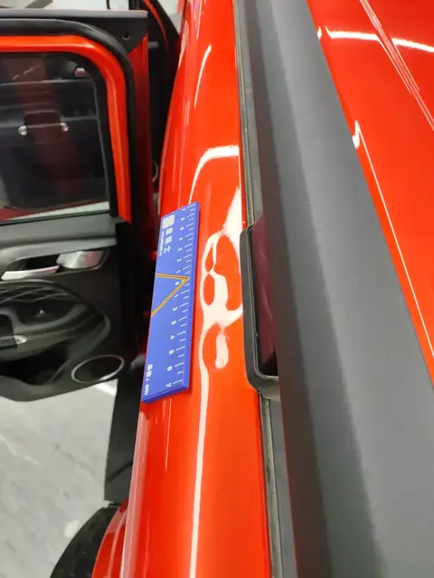 在外观检测部分,经过检测,这辆车在外观覆盖件上有1处瑕疵,具体为右后翼子板变形,除此之外,其它外观覆盖件未发现异常项,不得不说,前任车主的车技还是可以的,毕竟大家都知道越野车的外表有多经磕碰。