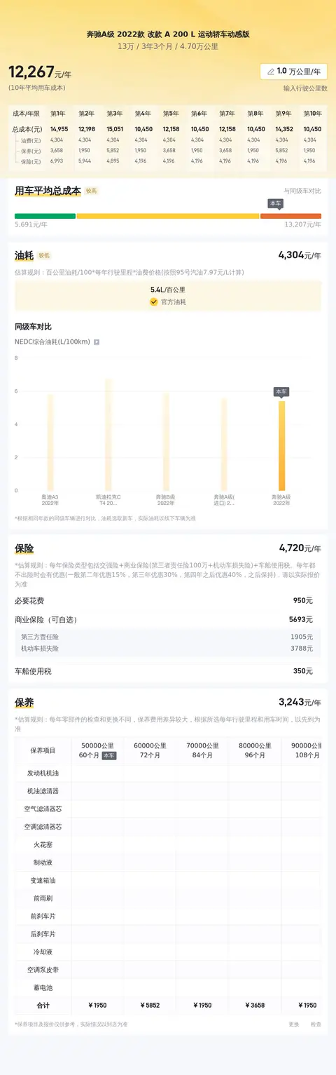 根据懂车帝官方的大数据分析,这款车10年平均用车成本大约在11545元/年,与同级别车相比处于适中的位置,表现正常。