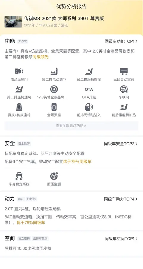 具体版本:传祺M8 2021款 大师系列 390T 尊贵版