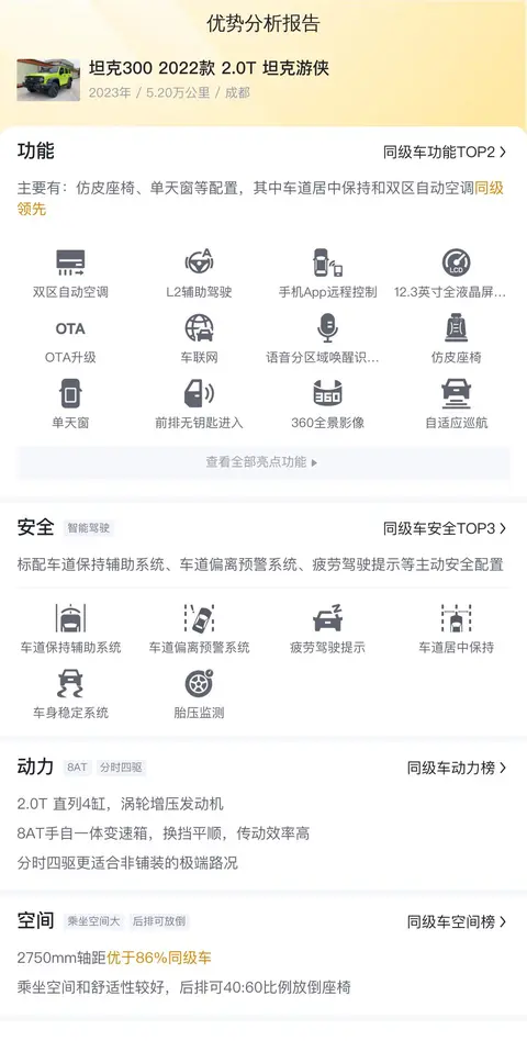 车辆版本:坦克300 2022款 2.0T 坦克游侠