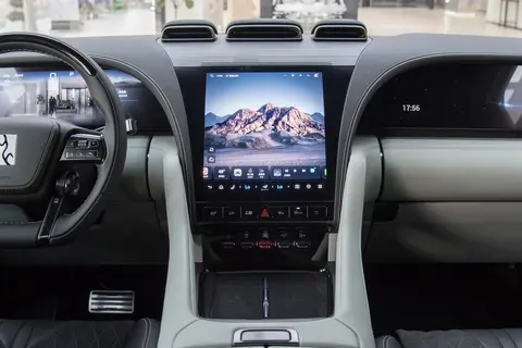 仰望U8打造了当前量产车中先进的数字交互生态系统。前排配备12.8英寸OLED星河曲面屏和23.6英寸副驾娱乐屏,后排搭载两块独立12.8英寸屏幕,支持五屏联动。70英寸AR-HUD抬头显示系统将导航、驾驶辅助等信息投射在前风挡上,大幅提升行车安全性。车机采用DiLink 150平台,搭载4纳米制程座舱芯片,操作流畅度媲美高端智能手机。智能语音助手支持全场景连续对话和"可见即可说"功能,大大降低了复杂功能的操作门槛。