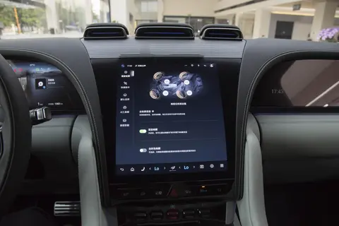 车内配置的丰富程度同样值得称道。前后排座椅均具备电动调节、加热、通风、记忆及按摩功能,此外还有腰部支撑4向电动调节、电动腿托以及高度可调头枕,乘坐体验堪比高端按摩椅。前排座椅具备智能随动功能,在乘员上下车时会自动调整座椅位置,提供了便利。副驾驶座椅侧面设有“绅士按键”,方便后排乘客调整前方座椅。后排座椅不仅支持一键电动放倒和复位,还配备了独立的中央扶手和双杯托,细节考虑周到。车厢内提供127种色彩的氛围灯,可根据个人偏好或音乐节奏进行变换,配合星空效果的天窗,在夜间行驶时,能营造出一种沉浸于璀璨星空下的独特氛围。
