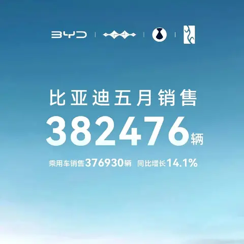 就在刚刚,比亚迪公布其5月份销量:总计382476辆,其中海外卖了88640辆。而4月份,这两个数字分别是:380089辆和78705辆。也就是说,国内销量环比微跌!