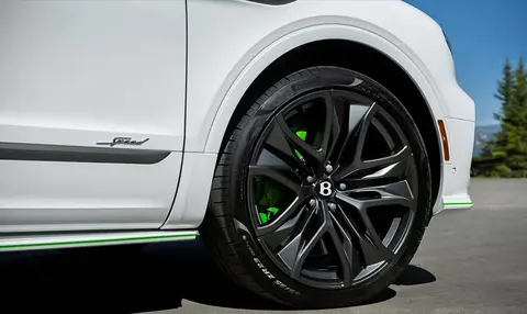 宾利在当地时间6月2日正式发布了新车官图,该车是宾利品牌迄今为止性能最强的SUV。新车车长为5305mm,提供4座与7座两种布局。新车依然延续宾利经典设计语言,前脸配备方正大尺寸网格进气格栅,中间有饰条分割,搭配复古圆形水晶切割大灯,车标、前后大灯、行李架等进行了黑化处理,车身侧面以黑色或绿色装饰条点缀,全新样式熏黑轮毂与绿色刹车卡钳凸显视觉冲击力,“Speed”徽标表明身份。车尾部分,大尺寸扰流板加入绿色可点亮装饰条,椭圆形尾灯及镀铬排气设计,搭配可选装的Akrapovic天蝎排气系统,彰显性能。