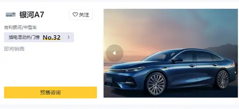 当然除了这些之外,吉利银河前段时间推出的星耀8 EM-i,其作为一台12.58万元起步的中大型插混轿车,同样威胁到了比亚迪的中大型轿车产品。而且随着时间的推移,吉利银河官方最近又发布了一款新车型的官图,从图片中可以看到,新车命名为吉利银河A7,同时整台车的设计风格与星耀8有几分相似之处。
