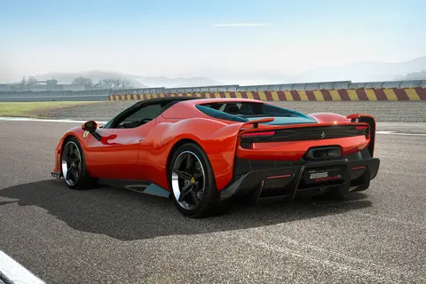 尾部方面,法拉利296 Speciale尾部保留中置单出式排气造型,不过尾灯组和排气设计方案不同于法拉利296 GTB。同时,该车使用部分赛车化设计元素,包括法拉利FXX K所采用的垂直翼片和小翼设计、法拉利296 Challenge保险杠上的垂直外部轮廓,以及后保险杠下部的新型气流扩散器等。