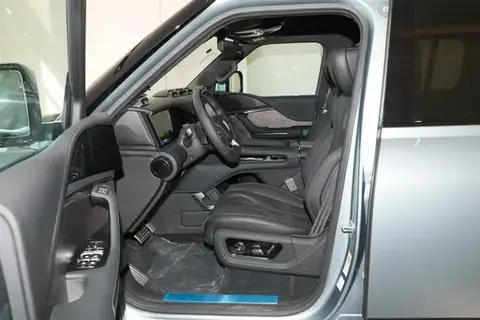 车身线条硬朗且流畅,给人一种强烈的越野感。车窗熏黑处理和后排隐私玻璃配置不仅保障了车内乘客的隐私,也进一步提高了整车的豪华感。车尾设计简洁而具有现代感,外挂式全尺寸备胎不仅为越野驾驶提供了更高的实用性,尾灯的点阵式布局与前大灯设计相呼应,夜晚点亮时尤为醒目,辨识度极高。