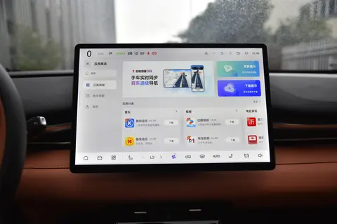 坐进深蓝S05的车内,第一眼就会被15.4英寸2.5K超高清向日葵屏吸引,这块屏幕遵循人体工学原理,支持左右旋转15° ,主副驾都能轻松操控,显示效果清晰细腻,无论是看导航还是看视频都非常爽。无液晶仪表但有50英寸AR - HUD抬头显示。车机系统搭载高通8155芯片,16GB运行内存、128GB存储空间,操作起来十分流畅,几乎没有卡顿现象。升级后的DEEPAL OS 3.0带来了全新的交互体验,全、半屏操作丝滑切换,还能自定义桌面背景,超级自定义3D实况桌面让每辆车都有自己的特色。