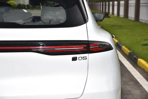 外观这东西虽然萝卜青菜各有所爱,但深蓝S05的设计确实让人眼前一亮。前脸采用封闭式进气格栅,搭配犀利的大灯组,营造出强烈的科技感。前包围两侧的导流槽设计不仅增加了运动气息,还能优化空气动力学性能。车身侧面线条流畅,溜背式造型搭配20英寸“旋翼”轮毂(Ultra版指定现车配备),动感十足。隐藏式门把手不仅提升了整车的颜值,还能降低风阻。车尾部分,贯穿式尾灯是当下流行的设计元素,点亮后辨识度很高,后包围下方的扩散器造型进一步增强了运动氛围。