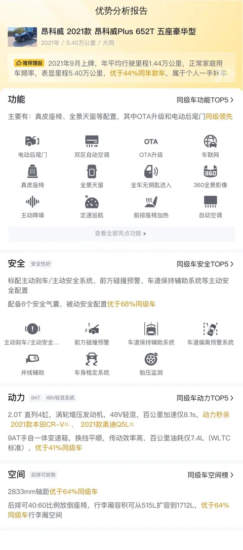 综上所述的新车含税价、用车成本、市场行情、优势分析、同款比价等数据仅供参考。在配置部分,因为二手车非标品,车辆可能会存在配置改装的情况,具体车况信息需要线下结合车辆实际情况进行综合参考。