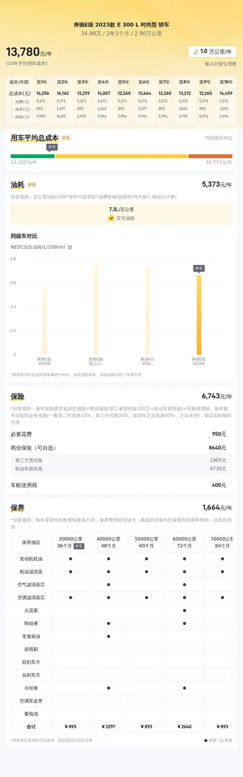 在用车成本部分,根据估算,这辆车的年均综合用车成本在1.4万元左右,当然具体用车成本金额还是根据车辆的实际使用情况而决定的。