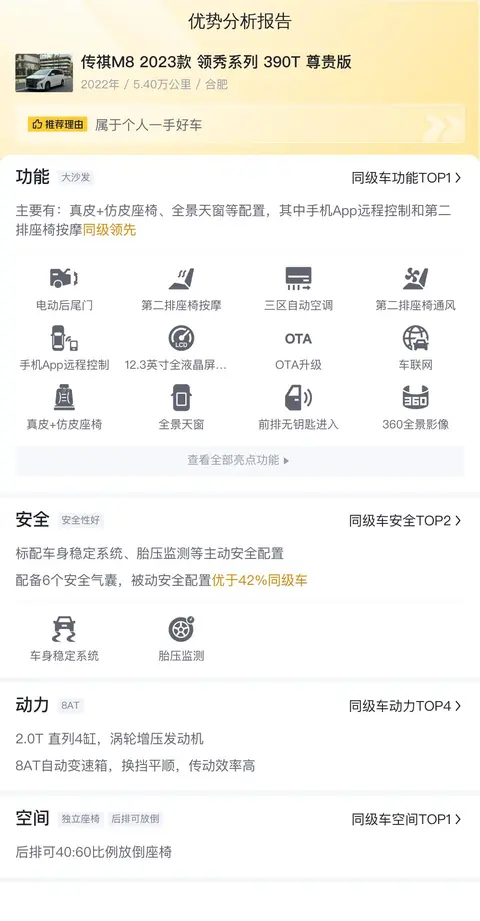 这辆传祺M8 2023款 领秀系列 390T 尊贵版在动力和配置方面表现出色,尤其是手机App远程控制和第二排座椅按摩,同级领先。不过,也有用户反映该车的油耗偏高,而且车身较大,停车不是很方便。