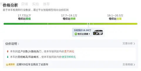 懂车帝利用大数据分析方法,对二手车市场中与本车相似的在售车型进行价格比较分析,并综合考量车辆性能、车况、以及市场竞争情况等因素,为本车制定了一个具有市场竞争力的价格。根据懂车帝的大数据分析,该车目前的售价为18.98万元。预计再行驶2年后可卖14万,约折价22.3%,百公里油耗大约为8.9L左右,每年用车成本大约为14000元(含保险、保养、燃油费用等),具体金额还需根据车辆实际使用情况和保养情况而定。