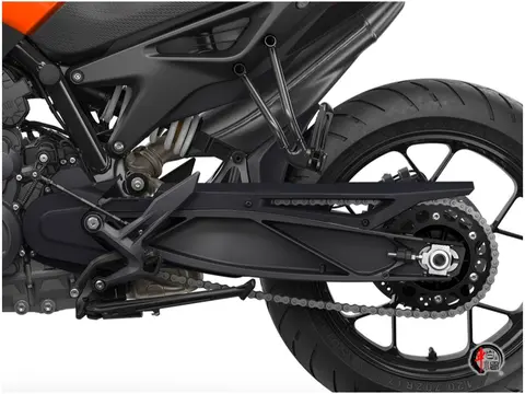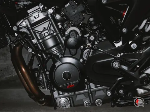 799cc排量的 LC8c直列双缸水冷引擎采用DOHC四气门结构设计,最大马力104.7匹,9000转爆发77kW最大功率,8000转输出87Nm峰值扭矩。优化燃烧室与排气系统后,不仅满足严苛Euro 5+标准,同时保留了KTM标志性的中低转狂暴输出。电子油门精准配合六速变速箱及PASC滑动离合,动力响应随拧随到。官方百公里油耗4.4L/100km。