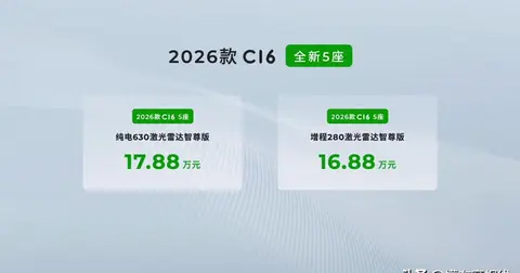 6月18号零跑C16(图片|配置|询价)新车上市了,现在有5座和6座可选,价格从15.18万起。这车比之前版本动力更强了,纯电版能开630公里,增程版纯电续航280公里。外观没太大变化,但是门把手改成了电动隐藏的,还能破冰。