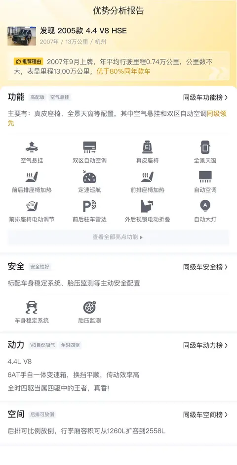 发现(图片|配置|询价),是路虎品牌旗下的经典车型,以其卓越的越野性能和舒适的驾乘体验赢得了全球车迷的喜爱。2005款发现4.4 V8 HSE作为这一代的中期改款车型,在延续了家族经典设计的同时,也带来了诸多升级和改进。作为路虎品牌的旗舰SUV之一,发现不仅承载了品牌的越野精髓,更不断追求驾驶舒适性和科技感的提升。2005款4.4 V8 HSE作为这一代的代表作,其市场定位显然是高端越野SUV市场,它面向的是那些追求极致驾驶体验、注重生活品质且具备一定经济实力的消费者群体。