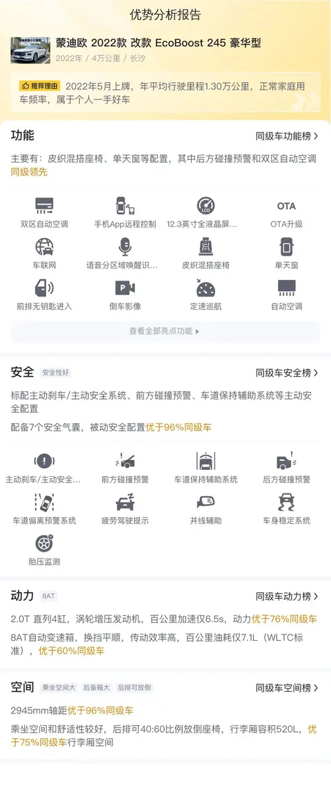 综上所述的新车含税价、用车成本、市场行情、优势分析、同款比价等数据仅供参考。在配置部分,因为二手车非标品,车辆可能会存在配置改装的情况,具体车况信息需要线下结合车辆实际情况进行综合参考。