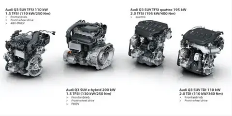 动力方面,新一代奥迪Q3为消费者提供了丰富的选择。燃油版车型提供1.5T和2.0T发动机,其中1.5T发动机最大功率118kW(160马力),最大扭矩250N・m,传动系统匹配7速湿式双离合变速箱。2.0T发动机分为高低功率两个版本,低功率版最大功率140kW(190马力),最大扭矩320N・m;高功率版最大功率162kW(220马力),最大扭矩350N・m,部分车型还配备quattro四驱系统,传动匹配7速湿式双离合变速箱。。此外,新车还首次推出1.5T插混系统,由1.5T发动机与85kW电机组合而成,系统总功率达200kW,匹配25.7kWh电池组,WLTP工况下纯电续航达120km,支持50kW直流快充,30分钟内可完成10%-80%的补能。