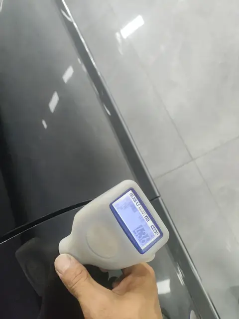 在检测过程中,发现该车的发动机盖存在变形的情况,中网破损,前保险杠有过喷漆修复,左前门和左后门有凹陷,右前门和右后门做过喷漆修复,左前轮毂和右前轮毂有剐蹭,左后轮毂和右后轮毂有剐蹭,右前翼子板和右后翼子板做过喷漆修复,前风挡玻璃有击伤,左后尾灯和右后尾灯有划痕,四门内饰板有瑕疵等情况,这些都是属于车身瑕疵,但不影响整体的使用。
