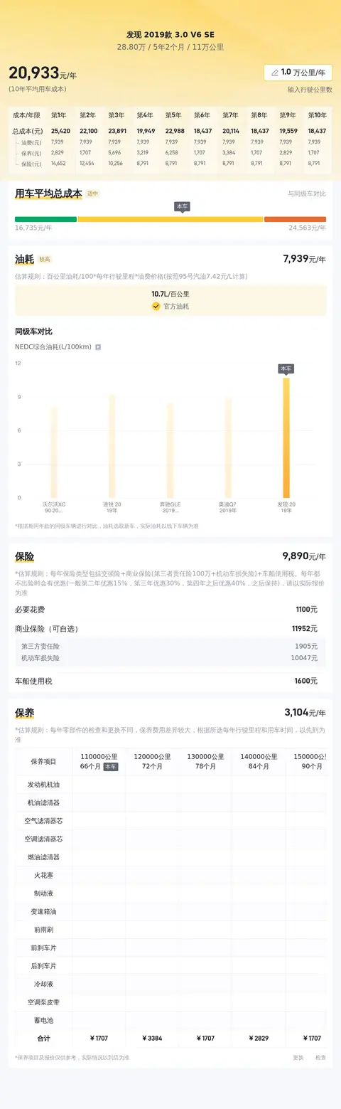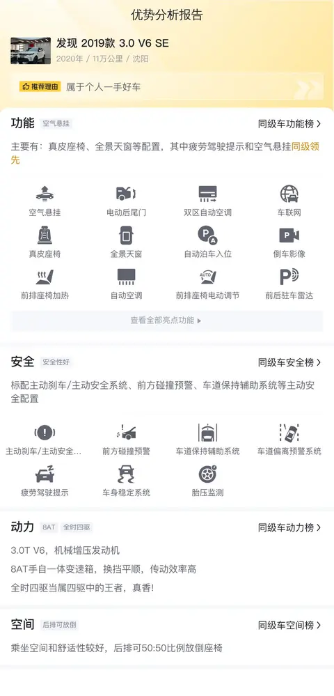 最后,咱们来聊聊这位“硬汉”的“养车经”。根据大数据分析,这款二手路虎发现 2019款 3.0 V6 SE 的年均综合用车成本大约在2.1万元左右。这个数字在同级别车型中属于合理范围,毕竟对于这样一位实力派“硬汉”来说,这点花费绝对是物有所值。当然,具体的用车成本还会受到多种因素的影响,比如驾驶习惯、用车环境、油价波动等等。但可以肯定的是,只要您善待这位“硬汉”,它必定会以出色的表现回报您的信任与爱护。所以,准备好迎接这位实力派伙伴了吗?一起开启属于您的精彩征程吧!
