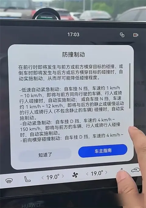 后来车主去4S店检查,售后一查发现根本不是车有问题,而是他自己没调好设置。原来车上的主动刹车分四个档位,从关闭到较近、适中、较远。车主之前开的是“较近”,这种模式得等快撞上了才管用。改成“较远”后,测试时车能提前识别障碍物,刹得挺稳。