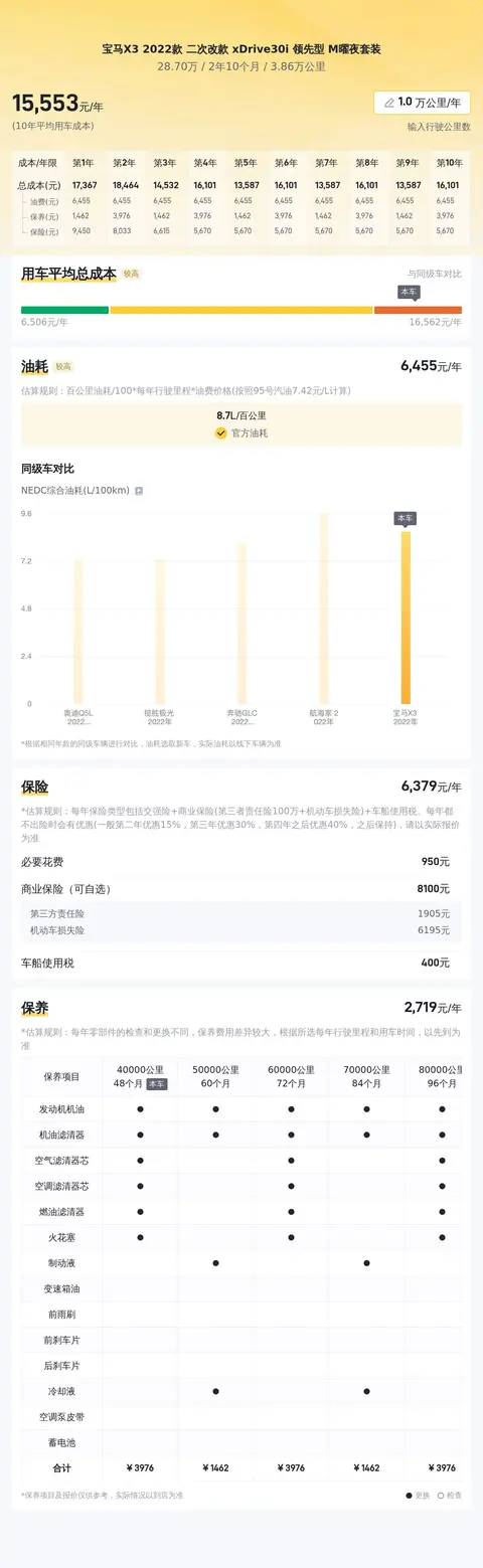 综上所述的新车含税价、用车成本、市场行情、优势分析、同款比价等数据仅供参考。在配置部分,因为二手车非标品,车辆可能会存在配置改装的情况,具体车况信息需要线下结合车辆实际情况进行综合参考。