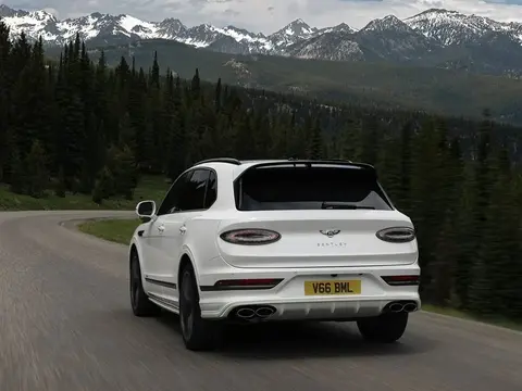 车侧在前翼子板处增加了修长的通风开口,并将宾利LOGO融入其中;新车标配23英寸熏黑铝合金轮圈,搭配绿色制动卡钳。