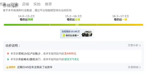报价合理,因为坦克300 2021款 越野版 2.0T 征服者的市场行情价是14.97万-18.12万,本车的报价是15.85万,所以价格上不占优势,但它的保值率较高,且里程比较低。