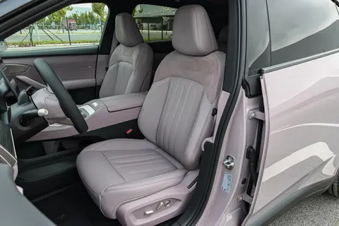 内饰采用简约科技风,整体布局清晰合理。17.2英寸中控屏尺寸巨大,视觉效果惊艳;取消了传统仪表盘的设计,以13英寸HUD抬头显示取代,观看起来更加直观,查看路况信息时也不用频繁低头了,使驾驶关注度更高,更安全。车内大量采用软性材质包裹,触感细腻,像中控台、车门内饰板等部位,摸上去很有质感,营造出豪华感。