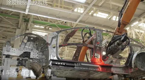 走进车身车间,166套柔性定位系统正以±0.1毫米的重复精度组装车身。5195个连接点中包含1321个高强度铆点,构建出720度防碰撞笼式结构。这里的双臂CMM测量系统精度高达18微米,相当于人类头发丝直径的四分之一。更令人惊叹的是,全厂622台机器人实现关键工序100%自动化,配合2843套联网设备实时采集数据,构建起数字化质量管控网络。当其他工厂还在依赖人工抽检时,享界已通过AI视觉系统实现全过程无死角质检。