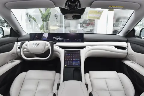 MG IM5采用了右舵布局,并采用了三辐式圆形方向盘,而非国内的半幅方向盘。车内标配26.3英寸的联屏设计,副仪表台处则为10.5英寸的中枢屏。另外,该车还提供有全景天幕、20扬声器音响系统、四门双层夹胶玻璃等配置。