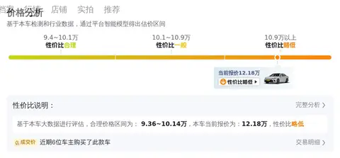 在全国同款比价中,相同车源,不同车价,本车报价12.18万,价格适中。