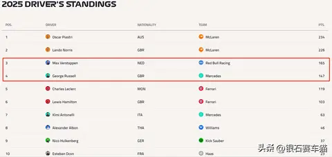 赛车猫为什么会这么猜呢?首先,因为红牛跟维斯塔潘的合同签到了2028年,合同规定,在2025年7月底前,如维斯塔潘不能进入车手积分前三,他将成为自由车手。但此时此刻,他的积分正好是第三,7月底前只剩下比利时Spa这一站,只要不退赛,拉塞尔几乎不可能一站就追上18分的差距。到8月1日匈牙利大奖赛时,解约窗口就几乎已经关闭了。