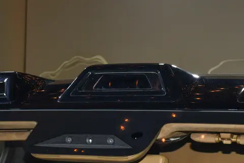 仰望U8L鼎世版中控台配备12.8英寸OLED曲面屏,两侧还布局有贯穿式设计的23.6英寸仪表盘和副驾多媒体屏,以及AR-HUD抬头显示系统。该车配备四辐式电容方向盘,并应用了怀挡式换挡机构。副仪表台区域配有物理按键、手机无线充电面板等。另外,仰望U8L鼎世版对空调出风口造型进行调整,中置出风口改为一体式设计。