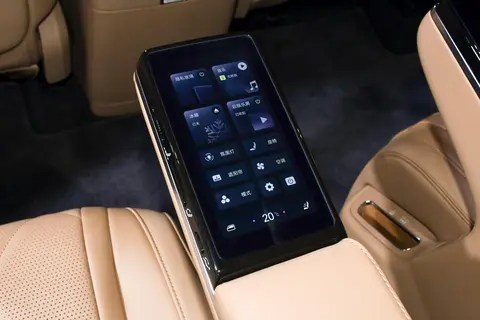 车辆后舱提供21.4英寸吸顶屏,10种主题香氛、双折叠桌板。中央岛台内置了车载冰箱,支持零下6摄氏度至15摄氏度制冷以及35摄氏度至50摄氏度制热。另外,该车搭载智能感光隐私车窗,二排车窗、二排角窗、三排车窗可进行独立控制和自适应调节,还可支持4种控制方式和4种迎宾方案。