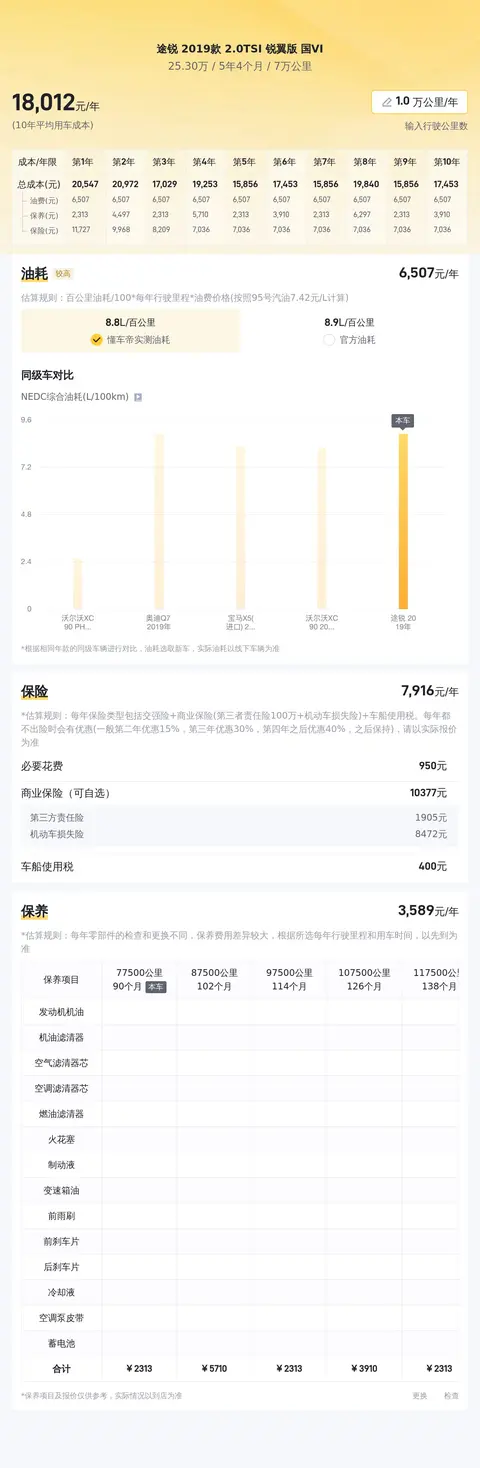 综上所述的新车含税价、用车成本、市场行情、优势分析、同款比价等数据仅供参考。在配置部分,因为二手车非标品,车辆可能会存在配置改装的情况,具体车况信息需要线下结合车辆实际情况进行综合参考。