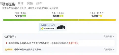在了解了车况信息之后,我们来看看这款车在二手车市场的行情如何。目前它的报价是10.08万,综合性价比指数为72%,也就是说当前报价比较实惠,因为它的性价比指数超过了70%。同时根据大数据分析,这款车的热度比较高,预计30天内会售出,所以如果您喜欢这款车,就要尽快下手了。