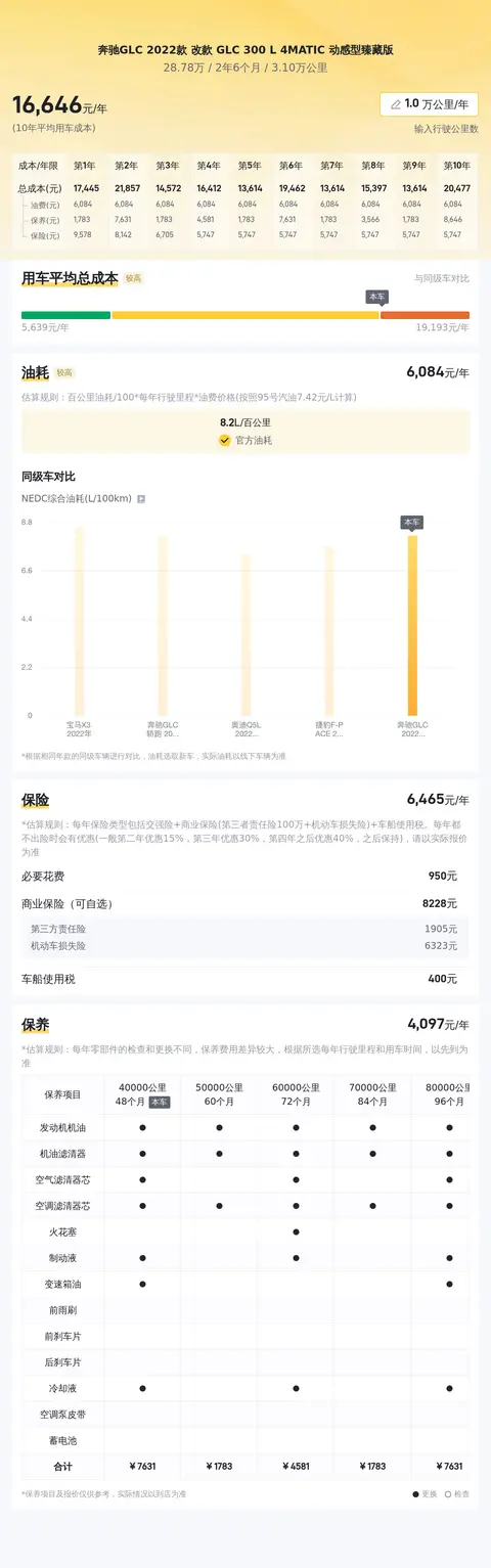 缺点:虽然奔驰GLC的整体表现非常出色,但在某些方面也存在一些不足之处。例如,部分车主反映车辆的悬架偏硬,这可能会影响到乘坐的舒适性,尤其是在不平整的路面上行驶时。还有车主提出,车辆的油耗相对较高,这对于追求经济性的消费者来说可能是一个不利因素。另外,奔驰GLC的后排空间虽然宽敞,但中间座位的舒适度稍差,不太适合长时间乘坐。此外,车辆的触控屏尺寸较小,可能无法满足部分消费者对于大屏幕的需求。最后,奔驰GLC的维修保养成本相对较高,这对于一些预算有限的消费者来说可能是一个需要考虑的因素。