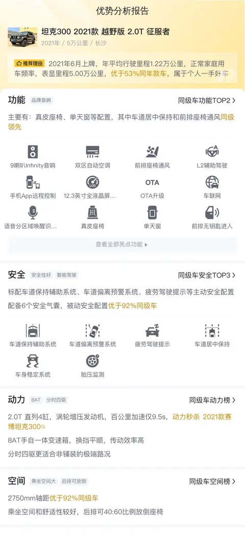 综合来看,坦克300 2021款 越野版 2.0T 征服者是一款集豪华与性能于一身的SUV,它的动力、配置和品质都表现出色,但也存在价格较高和技术略显落后的问题。在购买前,建议您根据自己的需求和预算进行仔细的评估和比较,选择最适合自己的车型。