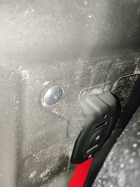 内饰污渍较少,磨损较少,可以说比较新,不过纤维织物座椅不好打理,是个小瑕疵。