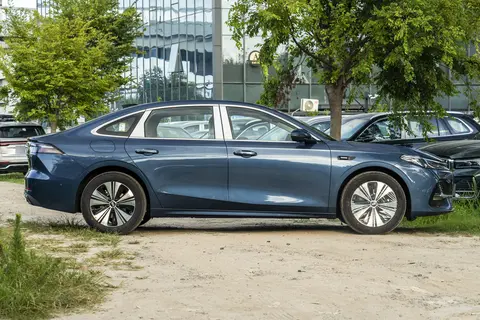 来到车身侧面,吉利银河 A7 采用了动感的溜背设计,犀利的腰线从前翼子板一直贯穿至尾灯组,流畅的线条勾勒出优雅的车身姿态。同时,全车多达 21 处的空气动力学减阻设计,将整车风阻降低至 Cd 0.229,这一出色的风阻系数,不仅有助于降低能耗,提升续航表现,还能在车辆高速行驶时,提供更好的稳定性和操控性。此外,新车提供17英寸~19英寸不同规格的轮胎,能够满足不同用户对节能和运动的多样化需求。
